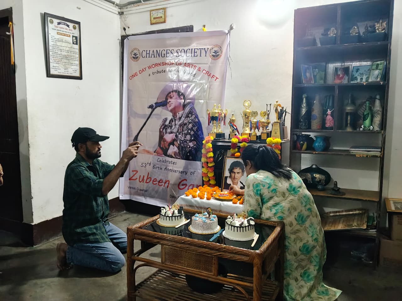 Today Evening, Tuesday 18th Nov. As a Tribute to Our Heartdrop Lt. Zubeen Garg on his 53rd Birthday Anniversary, we offer Flowers and Candles 🕯 to his Photo Frame and Sang MAYABINI 🎵 🎶 Song.